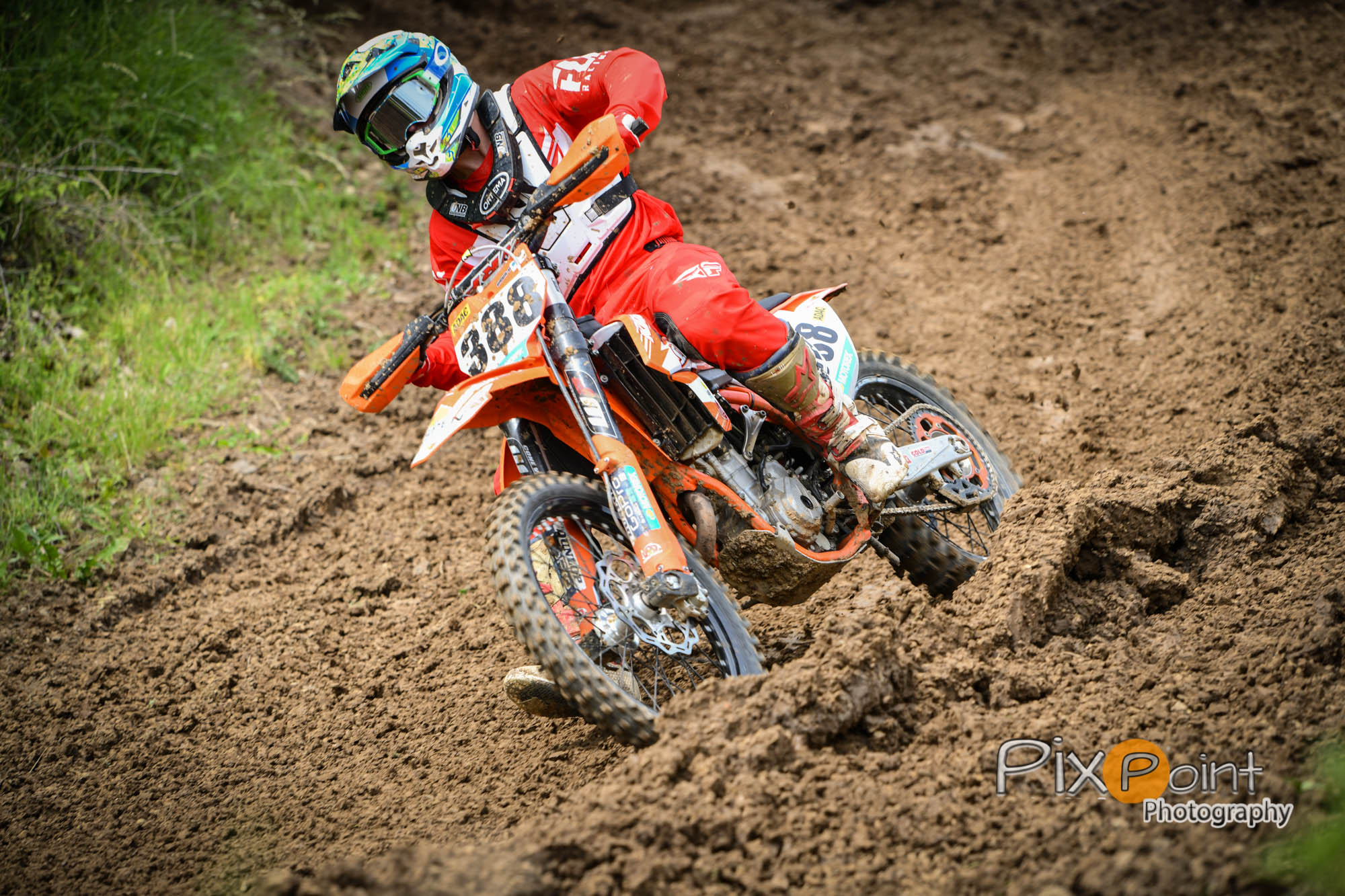 Phil Niklas Löb belegte in der Youngster-Klasse den zweiten Platz. Nach einem guten Start im ersten Lauf, blieb er jedoch nach der ersten Kurve an dem stark gewässerten Hang kurz hängen. Dadurch viel er erst mal auf Platz 20 zurück. Mit Kampfgeist konnte er bis auf Platz drei vorfahren, ging aber nach einem Sprung kurz zu Boden. Auf Platz fünf konnte er Lauf eins beenden. Beim Start zum zweiten Lauf lag Löb nach der ersten Kurve auf Platz vier. Schnell konnte er zwei vor ihm liegende Fahrer überholen. Den Führenden der schon etwas Vorsprung rausgefahren hatte überraschte Löb in einer Kurve, und übernahm die Führung, die er auch schnell weiter ausbaute. Durch diesen Laufsieg konnte Phil noch den zweiten Platz in der Tageswertung erreichen. Tagessieger wurde Luca Pepe Menger.