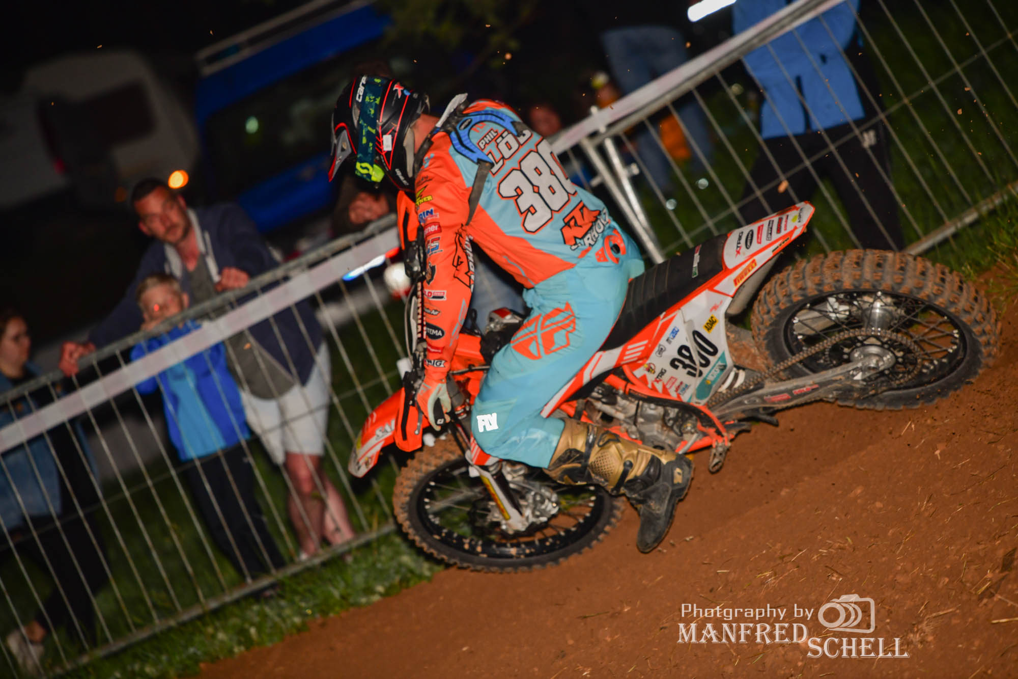 Zum dritten Mal hat der MSC Aufenau am 15.06. ein in Hessen einzigartiges Flutlicht Motocross Rennen veranstaltet. Nach Wetterpech im Vorjahr ist der Verein erfreut, dass die Veranstaltung diesmal ein voller Erfolg war. Bis zum einsetzen der Dunkelheit, war schon zwei Drittel der Tagesveranstaltung vorbei. Die Beleuchtung war gegenüber dem Vorjahr noch verbessert worden. Trotzdem waren noch dunklere Passagen zu meistern. Einige Fahrer mit denen ich nach dem Rennen gesprochen hatte, konnten Spurrillen und Kanten nicht überall gut erkennen. Fünf Klassen fuhren ihre 2. Rennläufe noch unter Flutlicht.