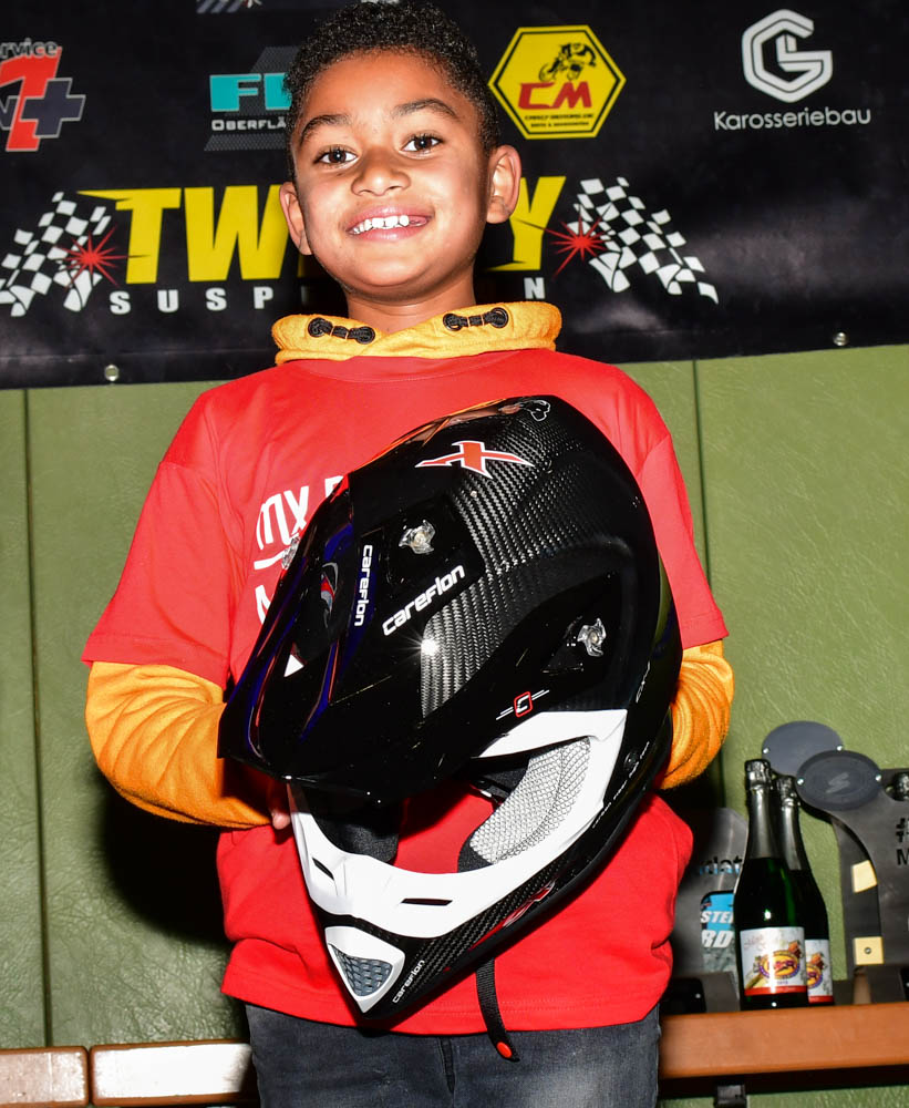 Die Firma Careflonehelmets zeigte ein Herz für die MSR Jugend, und stellte für die drei Punktbesten der Klassen 50, 65 und 85 cmm je einen CX 1 Carbon Helm im Wert von 390 Euro zur Verfügung. Die stolzen Sieger nahmen ihre neuen Helme dankend entgegen, und freuen sich nun in der kommenden Saison 2020, mit einem nur 930 Gramm schweren und gut belüfteten Helm an den Start gehen zu können. Auch die Sicherheit wird bei Careflon groß geschrieben. Das zeigten zahlreiche Tests während der Entwicklungsphase. Text: Manfred Schell