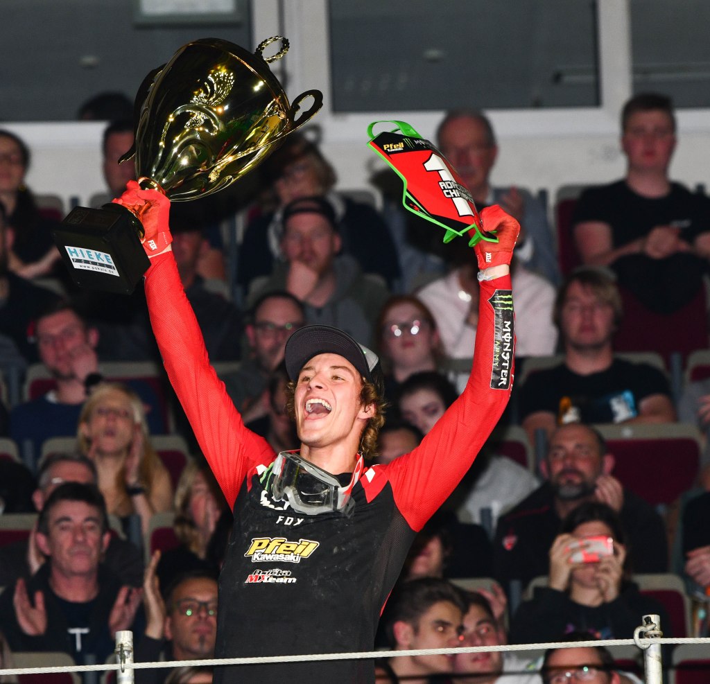 Rang sieben im SX2-Finale reichte dem US-Amerikaner Lance Kobusch (Monster Energy Kawasaki Elf Team Pfeil), um den Titel im ADAC SX-Cup 2019/2020 einzufahren. Bei allen sechs Wertungsläufen sammelte er Punkte, sein bestes Ergebnis war Rang zwei am ersten Tag in Chemnitz. „Ich bin dem Team Pfeil Kawasaki sehr dankbar, dass sie mir die Möglichkeit gegeben haben, den ADAC SX-Cup in Deutschland zu bestreiten“, sagte Kobusch strahlend. „Die Saison mit dem Titelgewinn abzuschließen – da geht ein Traum in Erfüllung.“
