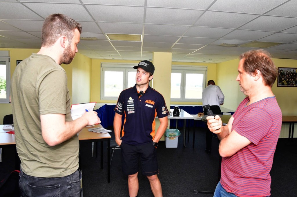 dem ebenfalls thüringischen Wormstedt, auf Punktejagd gehen. Der Pilot vom KTM Kosak Team war einer der zwei Live-Gäste als Fahrer bei der PK. Nach guten Ergebnissen bei den ersten Saisonrennen, durchkreuzte eine Trainingsverletzung mit nachfolgender Operation zwischenzeitlich seine weiteren Pläne. Am kommenden Wochenende will der 24-Jährige erstmals wieder in den Sattel steigen und dann natürlich im Juni auch fit zu seinem Heim-GP antreten. Dazu äußerte er folgende Gedanken: „Ich freue mich schon auf die WM in Teutschenthal. Ich erwarte von mir für das Rennen das gleiche, was ich immer von mir erwarte. Aber mein Heimspiel will ich auch genießen. Das ist immer ein unbeschreiblich geiles Gefühl, wenn die Hänge voll mit Zuschauern sind und man an jedem Teil der Strecke angefeuert wird. Auch die Atmosphäre im Fahrerlager ist immer etwas ganz Besonderes. Ich freue mich mega auf das Event und freue mich auch auf jeden Zuschauer der vorbeikommt. Das wird auf jeden Fall wieder geil wie jedes Jahr.“
