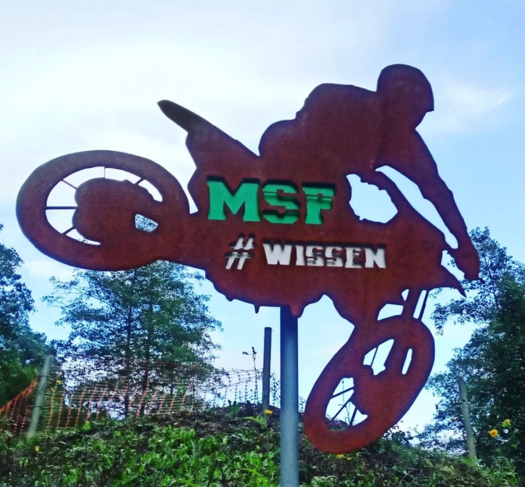 Im vergangenen Jahr hat der Verein Motorsportfreunde Wissen, noch zur Vorbereitung auf das 40-jährige Vereinsjubiläum, ein neues Schild in Form von einem Motorradfahrer angefertigt.