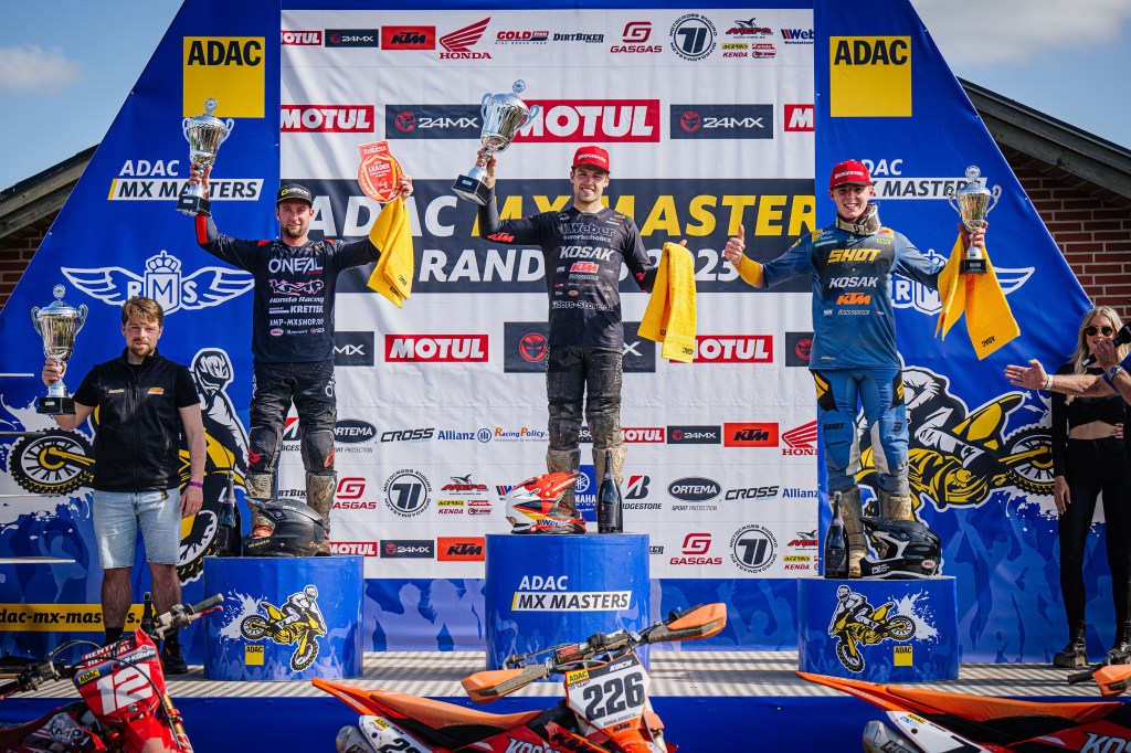 „Die Strecke hier ist sehr anspruchsvoll, bot aber gute Linien und Überholmöglichkeiten. Es waren drei schwierige Rennen, aber ich hatte das ganze Wochenende den Speed und nutzte meine Chancen. Zwei Laufsiege, mein erster Gesamtsieg beim ADAC MX Masters, besser hätte es nicht laufen können“, freute sich Tom Koch bei der Siegerehrung.
