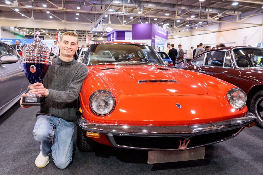 ein Maserati Mistral 4000 ist das schönste klassische Fahrzeug der Essen Motor Show 2025 – so entschied eine international besetzte Jury beim Concours d’Élégance im Classic & Prestige Salon in den Hallen 1 und 2. Der italienische Sportwagen von 1968 wurde vollständig restauriert und begeistert vor allem durch seine elegante, ungewöhnliche Karosserie aus der Hand des renommierten Designers Pietro Frua. Das außergewöhnliche Fahrzeug erwartet die Besucher in Halle 1 am Stand des Oldtimer-Restaurationsspezialisten Feierabend. Für 240.000 Euro steht der Mistral dort zum Verkauf. (Im Bild: Laurenz Feierabend)