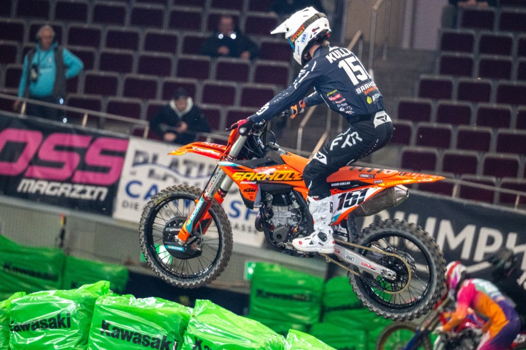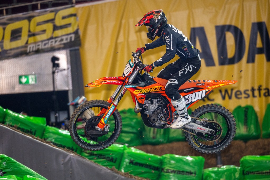 Der Franzose Calvin Fonvieille hat am Freitagabend in der Westfalenhalle den ersten Sieg für das Team KTM Sarholz eingefahren. Vor nicht ganz ausverkaufter Halle gewann der Fahrer von Teamchef André Sarholz die MX2-Klasse beim Supercross.