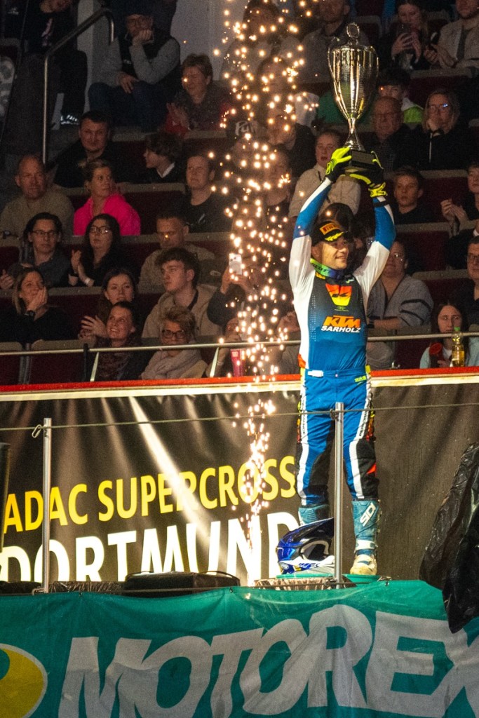 Nachdem Fonvieille bereits am Samstagabend zum Supercross-Champion gekürt worden war, legte er am Sonntag noch einmal nach: Mit einer herausragenden Performance sicherte er sich erstmals den Titel „Prinz von Dortmund“ – ein historischer Erfolg für ihn und sein Team KTM Sarholz.